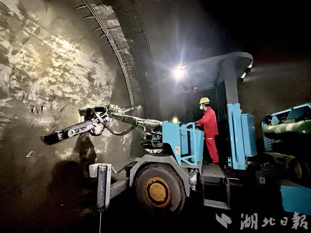 智能建造,成为隧道快速掘进的关键。打开电脑屏幕,红外线锁定钻爆点位,放射到掌子面。操作手按下遥控手柄,多臂凿岩台车伸出“手臂”在岩壁中快速掘进,仅1分钟就钻出4米深的炮眼,效率比传统人工提升70%。“有了隧道神器,施工不仅安全,而且高效。”一旁的中铁十二局项目部安全总监王岩指着另一台机械笑称,这是恶劣环境下的新劳模。只见这个被称作湿喷机械手的设备能自动往洞壁喷射混凝土,既均匀,强度又高,附着力还好,施工中的粉尘浓度大降,以前要五六名工人施工,现在仅需一名操作手。